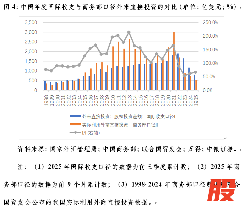 这引发了市场对于外商投资企业撤资问题的关注,因为商务部口径仅统计外资的新流入,不统计已有外资的撤出。国际收支统计数据显示,2023年,股权投资净流入869亿美元,其中资本金新增1200亿美元,前者仅相当于后者的72.4%,二者负缺口331亿美元;2024年,股权投资净流入728亿美元,其中资本金新增909亿美元,前者相当于后者的80.1%,二者负缺口181亿美元。